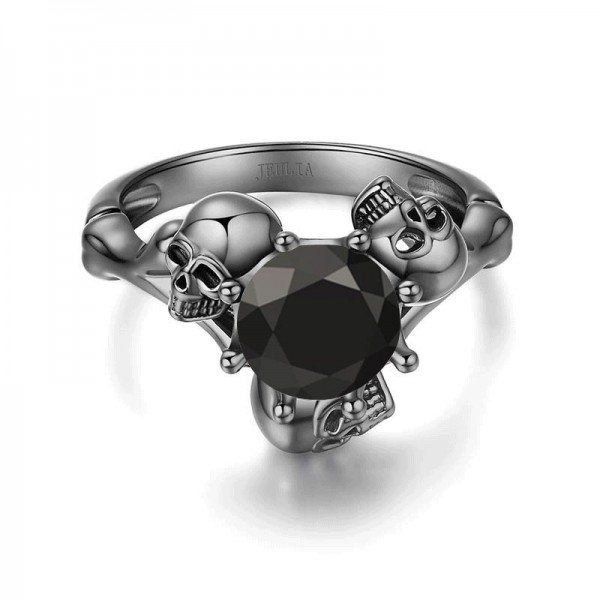 | Jeulia Three Skull Mysterious Round Cut Created Black Diamond Skull Ring |