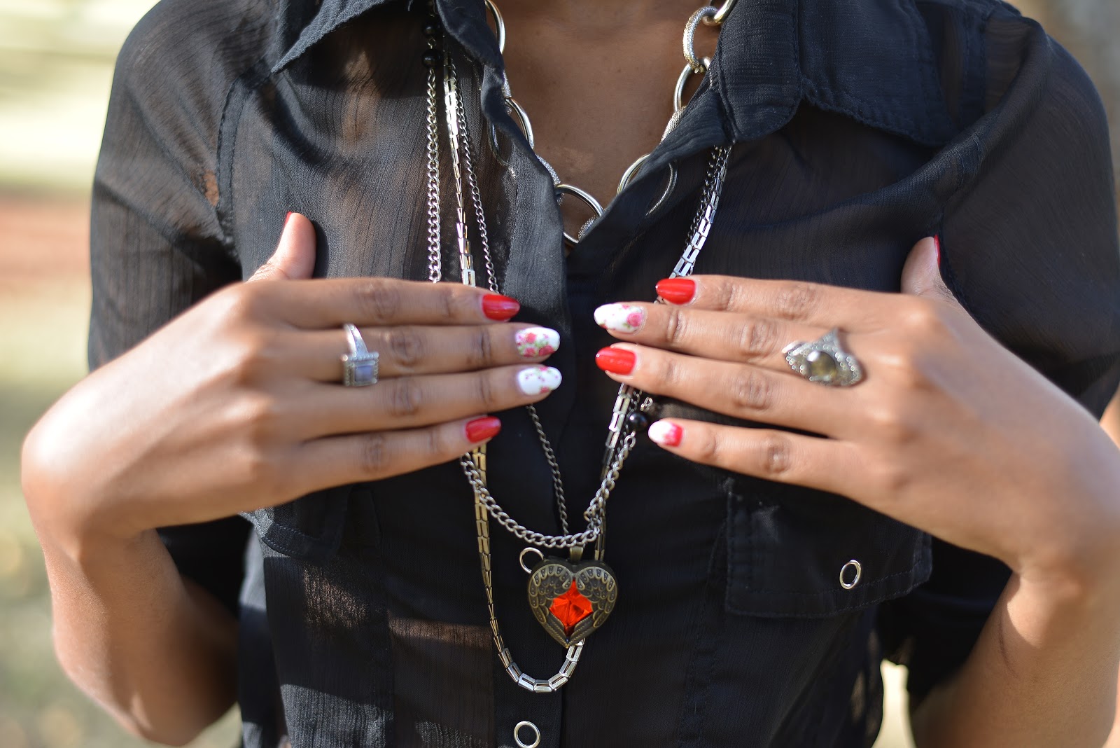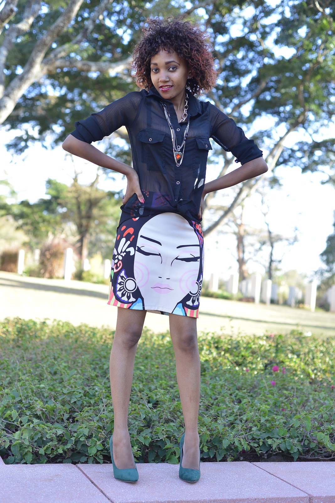 Am currently obsessed with skirts and especially short skirts that have fun details on them.How beautiful is this one?This skirt is an easy way to stand out from the crowd.I have worn it so many time but this is my favorite styling so far.I paired it with green pumps and a black blouse.I also layered a few necklace and rings too.Perfect look for the weekend.