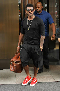 usher in red shoes
