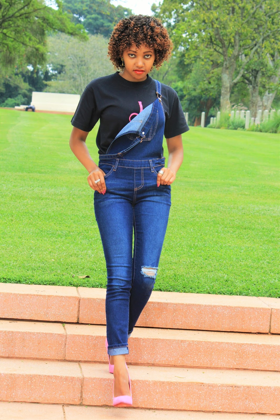 Today is all about this jumpsuit.Well when i hear of denim overall the first thing that comes to my mind is a certain telenovela called Hushand for hire where a certain lady wear ovealls through out.(Yes we my twin &I are super fans of telenevas we can watch them all day you can see some of the reviews we have done here,here and here) I think denim overalls are underrated they arent given enough credit as they should they are so beautiful,stunning if well styled otherwise you will end up looking like a farmer.They can easily be dressed up/down.In this case i wore mine with our glamourzone tee a pair of pink pumps which am so obsessed with lately.I also added a few statement rings.