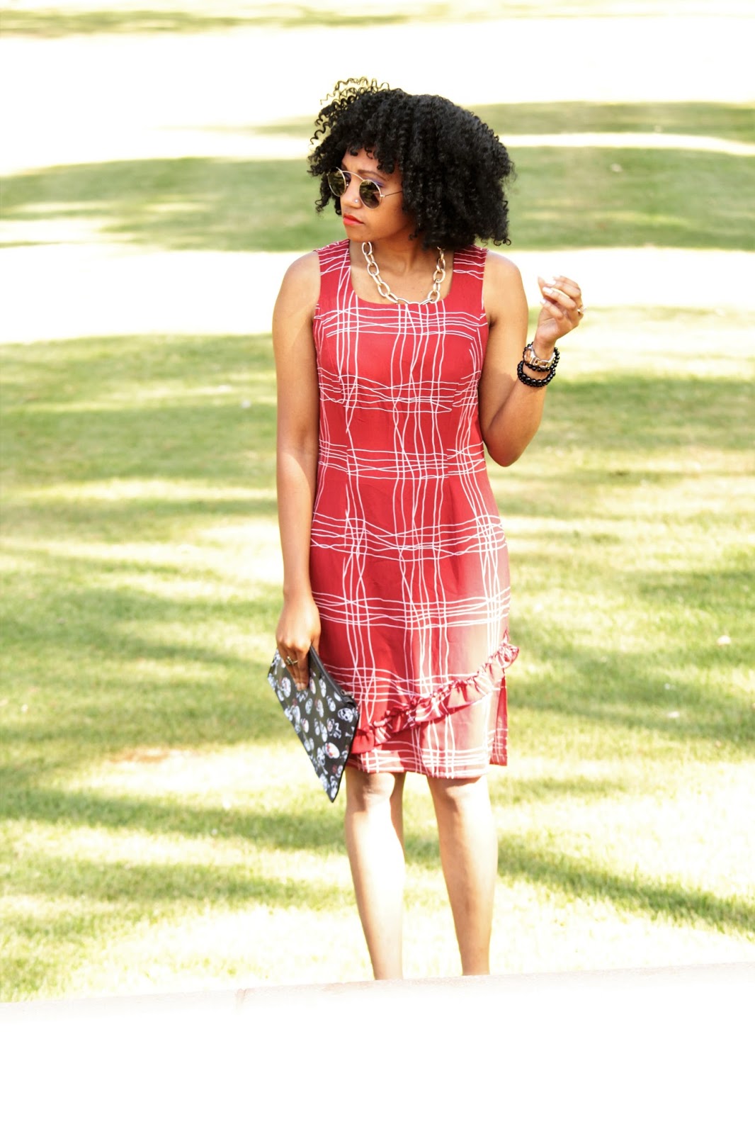 Love it from the detailing of on the shoes to the ruffle and the print of the dress.